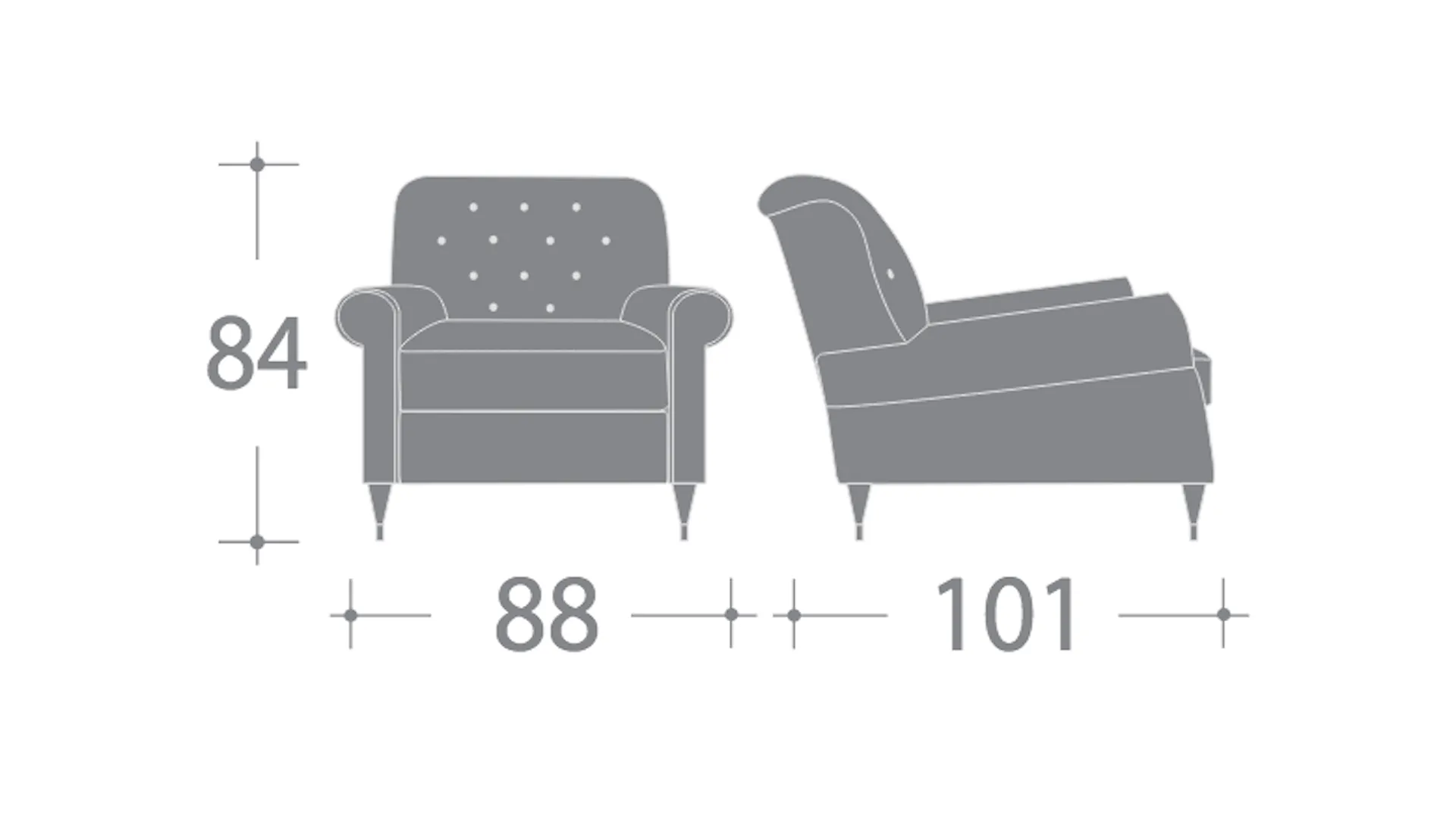 Wood frame, intertwined elastic belts with high rubber content. Different densities polyu-rethane foam filling. Seat cushion filled with goose down and polyurethane foam inset. Ca-pitonné manufactoring on back cushion. Wood feet ( front feet with steel wheels).