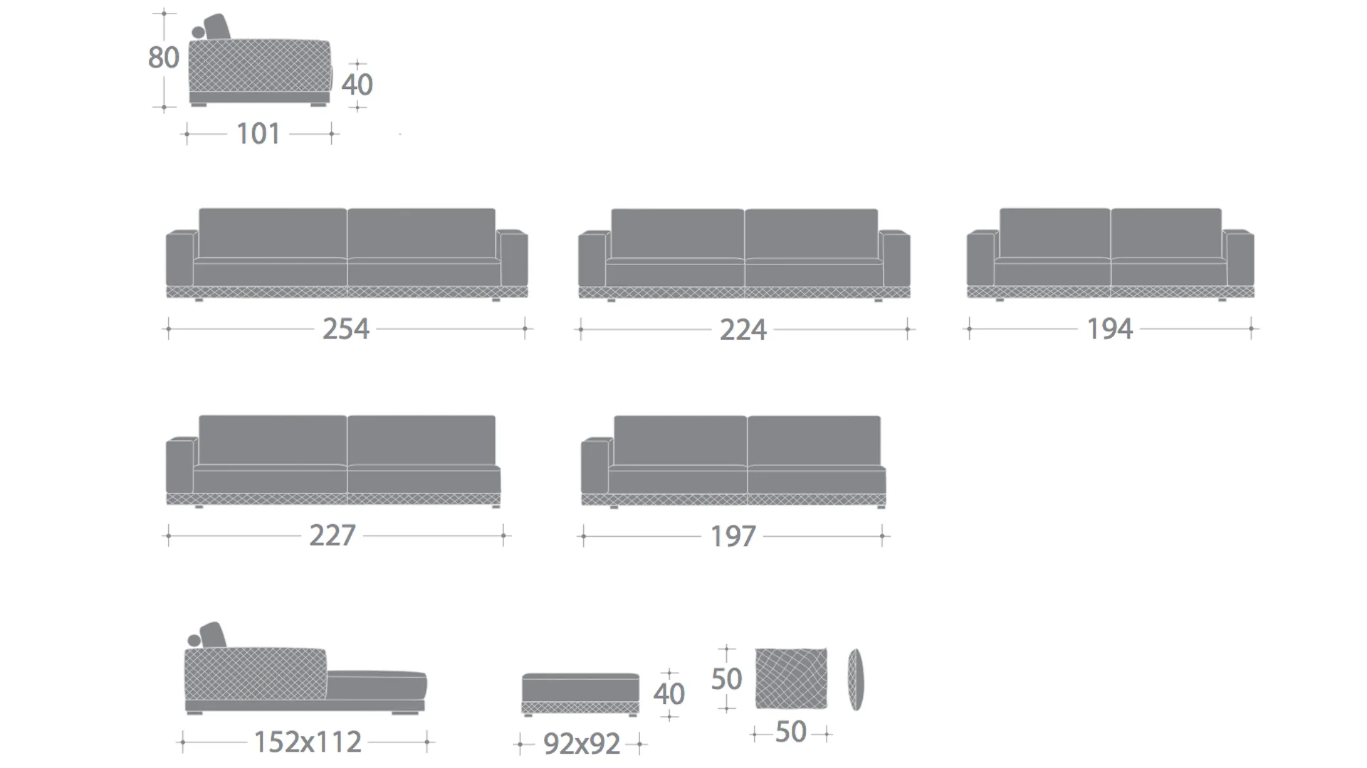 Beech, fir and multilayer wood frame. In-tertwined suspension made of reinforced elastic lining webbing. Seat cushion 100% in channeled down duvet over different density non-deforming polyurethane foam, back cushion 100% channeled down. Lining 100% cotton. Varnished solid wood. “Chanel” stitching on some parts of the arm , back and base. Remova-ble slipcover for seat and back cushions.