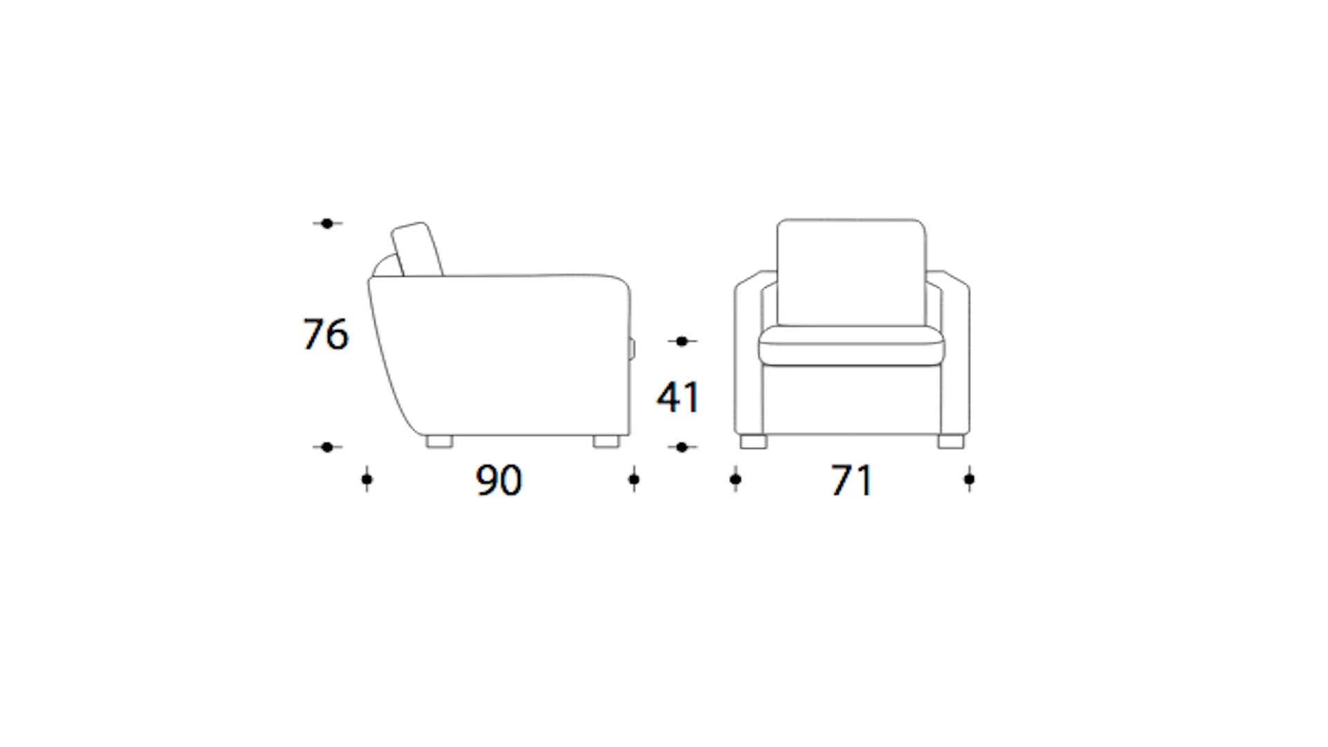 Curved shapes drawn between the encounter of the backrest and the armrest giving a sweeter aesthetic.