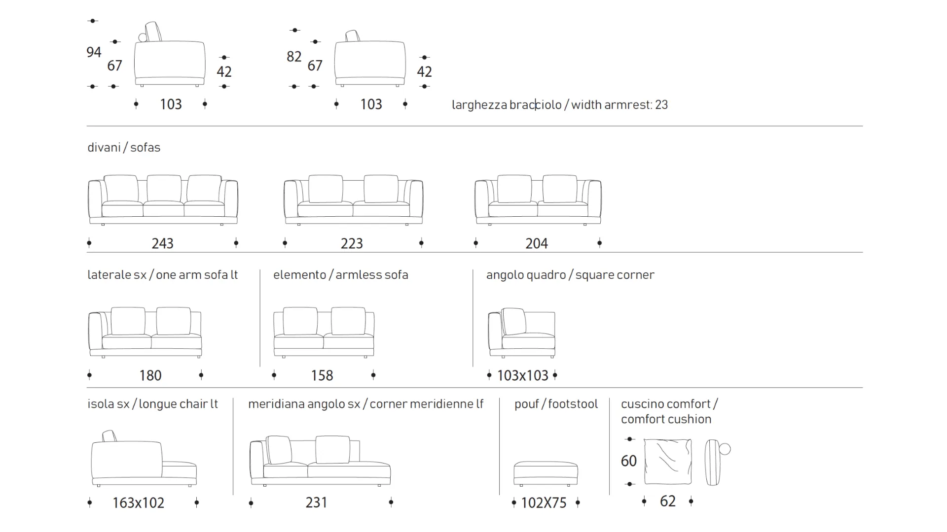Feature: special inner workmanship of the backrest with bands and back cushions in double height with and without support roller, for tailored comfort.