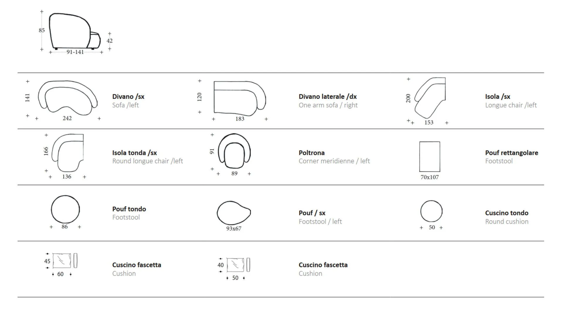 Padding: body and seat covered with polyurethane foam coated with acrylic.