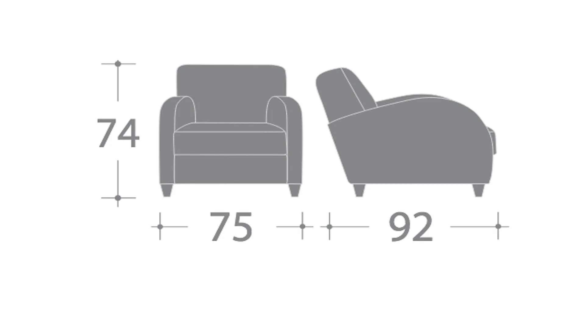 Wood frame, intertwined elastic belts with high rubber content. High different densities polyurethane foam filling, covered with acrylic padding. Wood feet.